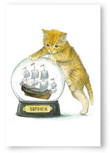 Открытка почтовая для посткроссинга акварель города России Воронеж Кот не с улицы шар кораблик